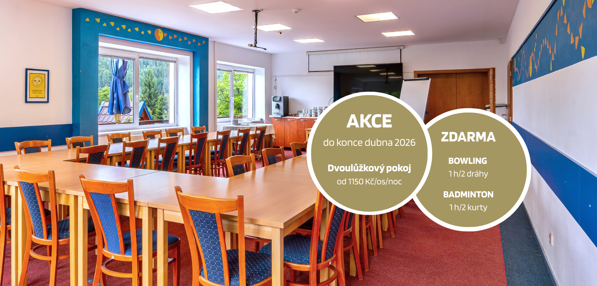 Hledáte místo pro školení, firemní teambuilding nebo večírek? Využijte speciální nabídky ubytování včetně bowlingu a badmintonu ZDARMA!
